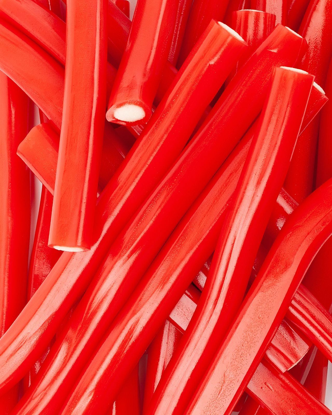 Zutaten: Zucker, Glukose-Fruktose-Sirup, WEIZENMEHL, Wasser, Dextrose, Pflanzliches Fett (Kokosnuss), Säuerungsmittel: E330, E296; Emulgator: E471 (Pflanzlich); Aromen, Konservierungsmittel: E202; Farbstoffe: E122, E129, E341, E516; Pflanzliches Öl (Palm), Überzugsmittel: Carnaubawachs